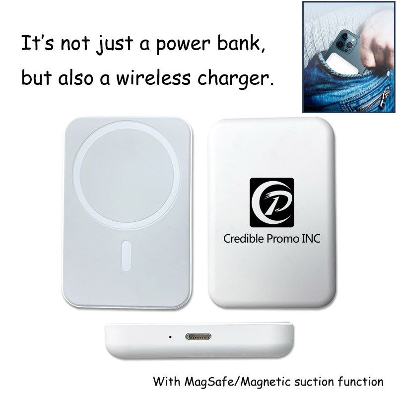 This is not just a power bank, but also a wireless charger! Features with Magsafe magnetic suction function, wireless charging function compatible with all QI mobile phones. This charger enables you to stay charged all day at work or on a fun night out. It's also a versatile power source for charging any wireless or non-wireless-enabled devices. Our listed price is based on volume 10,000 mAh, we also have 5,000 mAh option, welcome to inquiry us!