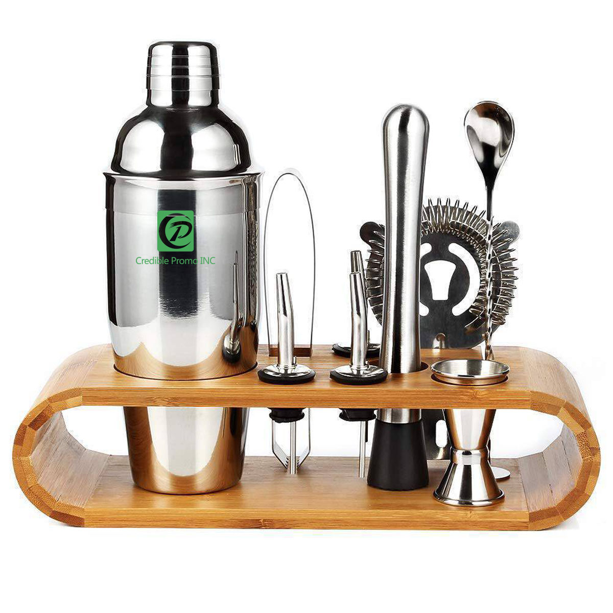 10-Piece Bar Tool Cocktail Shaker Set with Bamboo Stand
