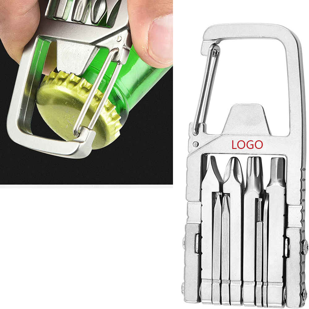 Made from premium stainless steel, this multitool is sturdy and resistant to rust and , can withstand the rigors of daily use and last for a long time. Contain large cross screwdriver bit, large slot screwdriver bit, hex screwdriver bit, small cross screwdriver bit, box opener, bottle opener, small slot screwdriver bit, card remove pin, carabiner, star screwdriver bit, mobile phone holder, ruler. With its folding design and keychain attachment, this multi tool is easy to carry with you wherever you, lightweight and compact, ideal for outdoor emergencies.