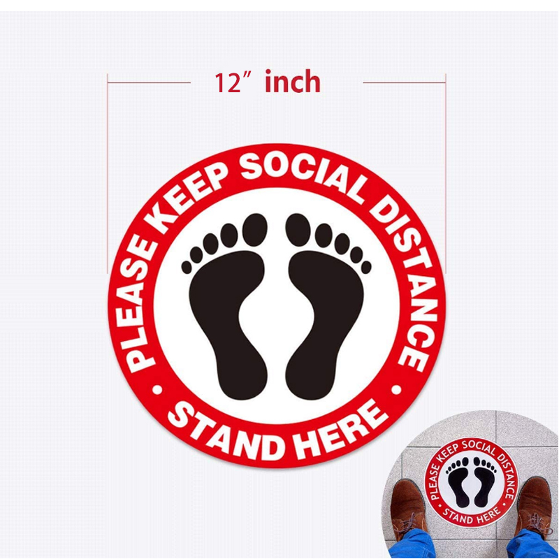 Our social distancing sticker maintain crowd control. Let them know where to stand as they wait in a queue, work or socialize. This social distancing floor decals help keep your customers and employees safe with these social distancing floor signs. Each sticker is 12"(30cm), whose surface is frosted. The decals are super bright and vibrant colors. Our social distancing floor decal stickers are slip resistant and scuff resistant. They are suitable for any floor, you can remove or re-locate at anytime. Your custom logo and is available.