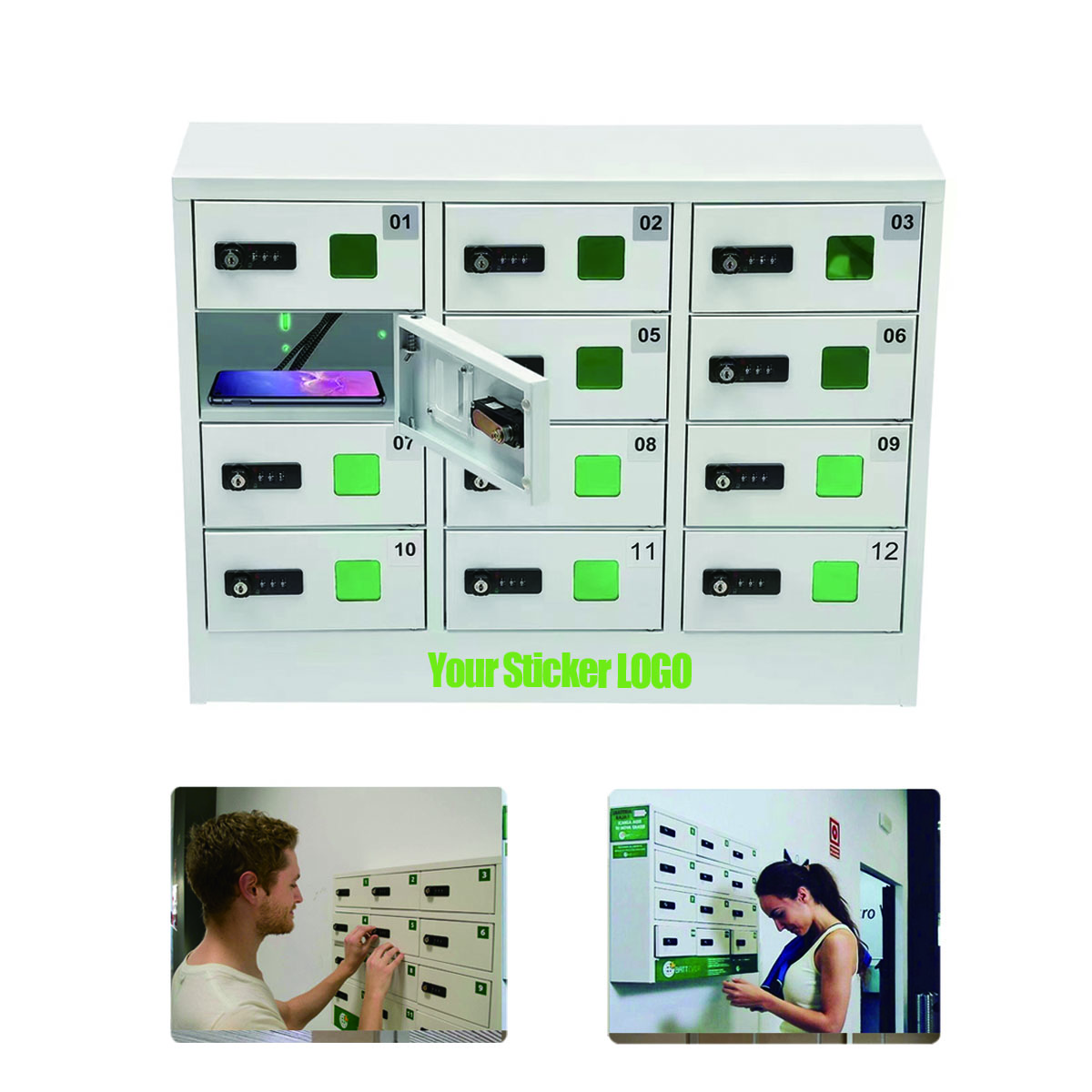 Charging station lockers are ideal for use in gyms, health clubs, government buildings, schools and other settings where small items need to be securely stored and charged at the same time. These lockers can accommodate cell phones, Tablet Computers, wallets, keys and other small items, so you can avoid the distraction of your cell phone during meetings and work, while keeping your small items such as cell phone and wallet safe and secure. Sticker logo.