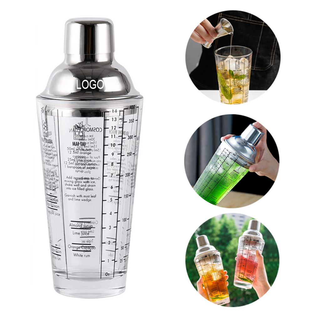 | Feature : | 14oz Clear Glass Cocktail Shaker with Strainer and Cocktail Recipes |