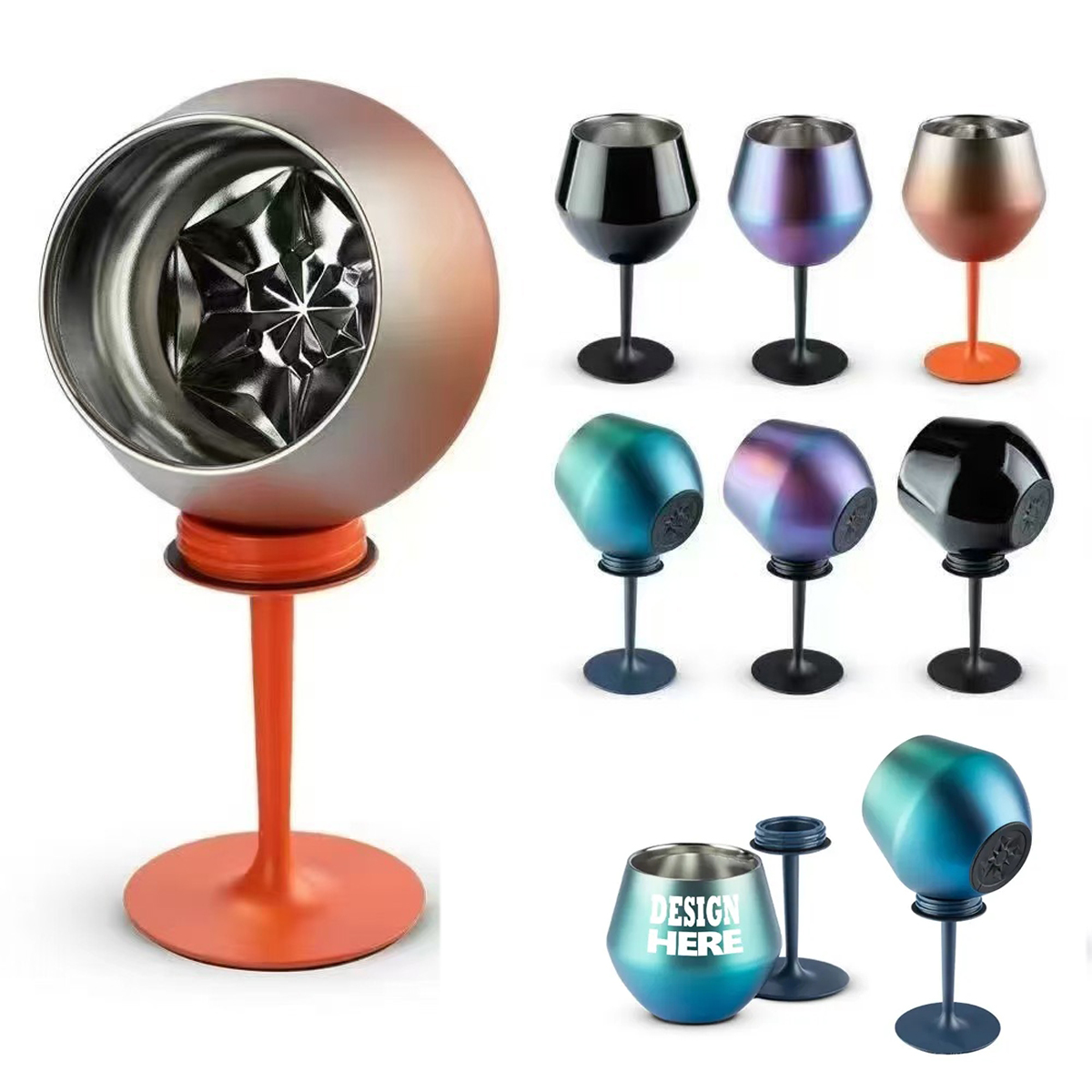 The detachable stem or handle allows for versatile use, letting you enjoy it as a traditional wine glass or a convenient tumbler. Made from high-quality 304 stainless steel, double-wall vacuum insulation keeps beverages cold hot, maintaining the perfect temperature without any condensation. Perfect for outdoor events, camping, poolside relaxation, weddings, and parties. Its colorful, unbreakable body makes it a fun and practical gift for her or a standout promotional item. Ideal for wine, champagne, cocktails, or any beverage.