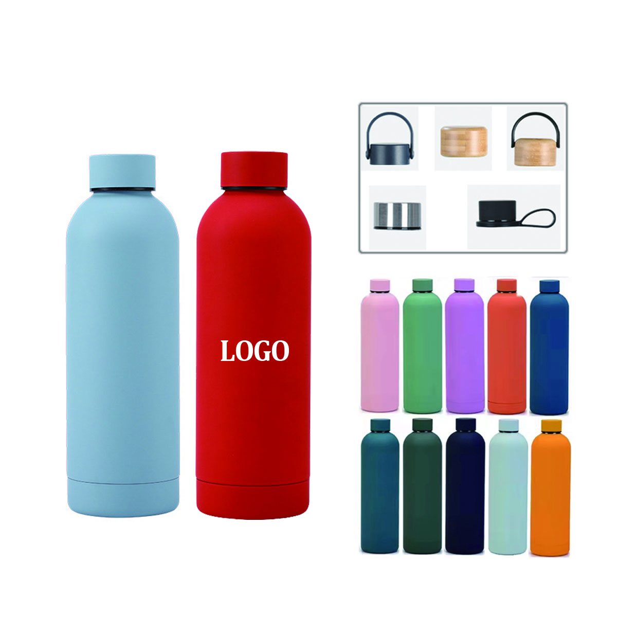 Refillable stainless steel bottle ideal for sports, hiking, travelling and more. Double walled vacuum insulation keeps your drinks hot for 6 hours or cool for 12 hours. Sleek and stylish design, with leak-proof screw top lid. Capacity: 500ml, 350ml, 750ml and 1000ml are also available. Bottle can be gradient colors.
