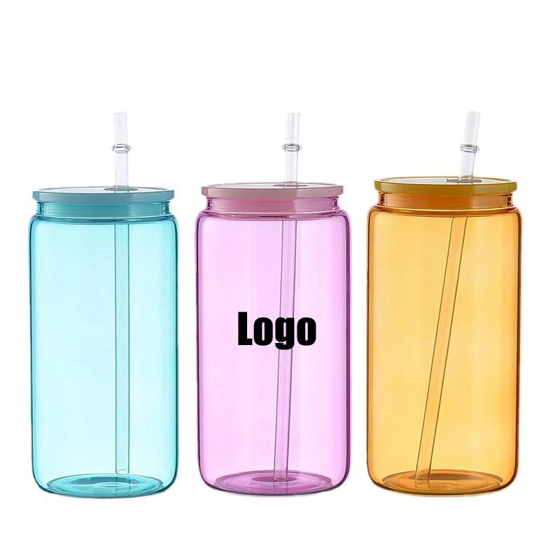 | Feature : | 16 Oz colored Glasses witt Lids and Glass Straw Can Shaped Glass Cups Beer Glasses Ice Coffee Glassware |
