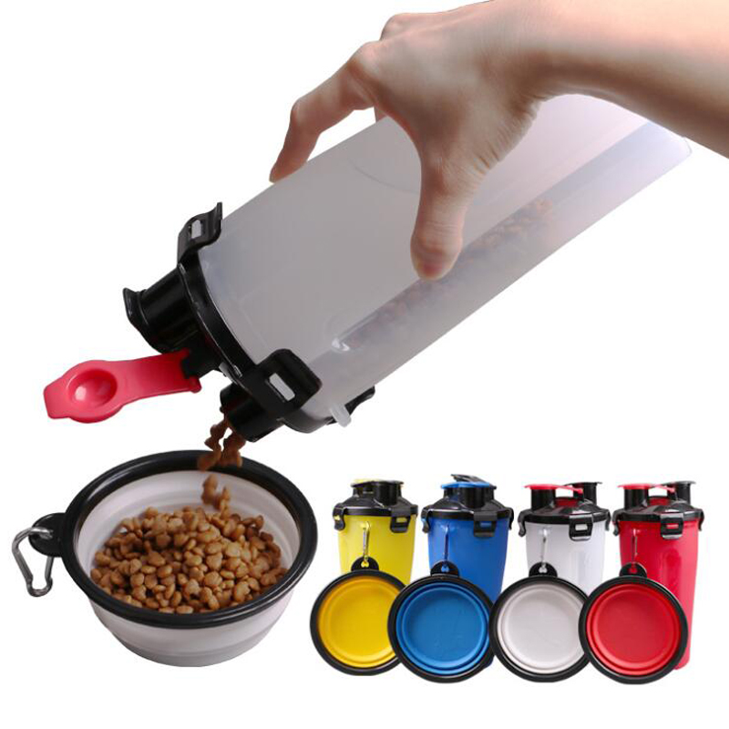 | Feature : | 2 in 1 Portable Pet Food Water Cup Water Dispenser Food Feeder With Folding Bowls For Travel |