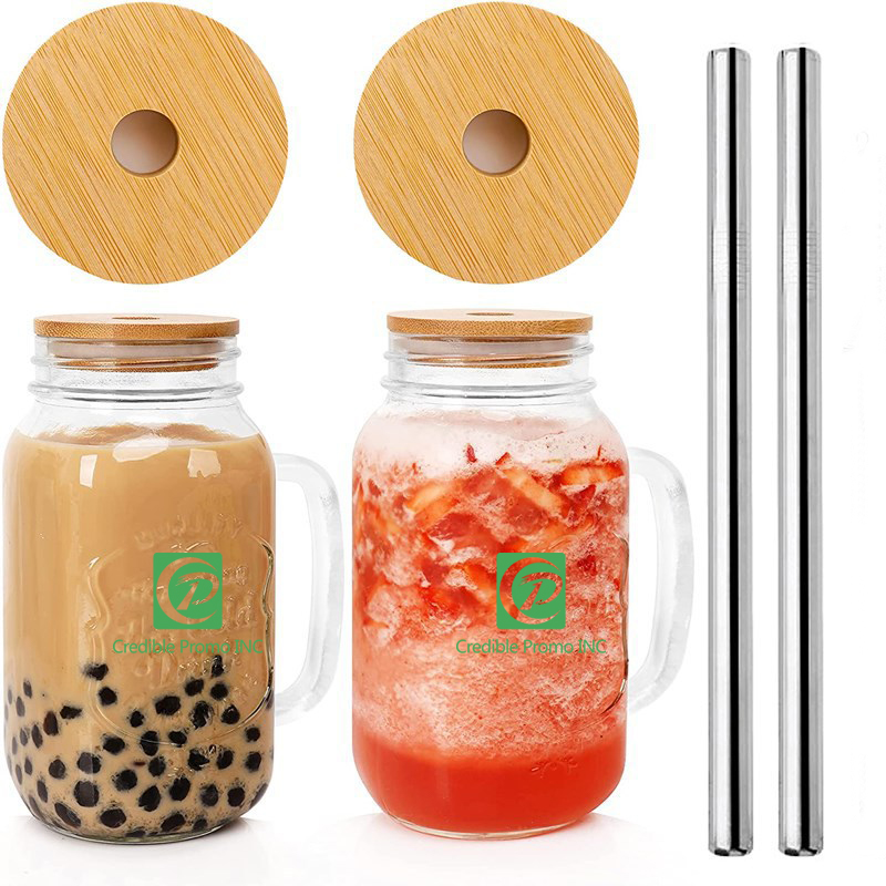 24 Oz. Regular Mouth Mason Jars With Stainless Steel Straw Lid And Handles