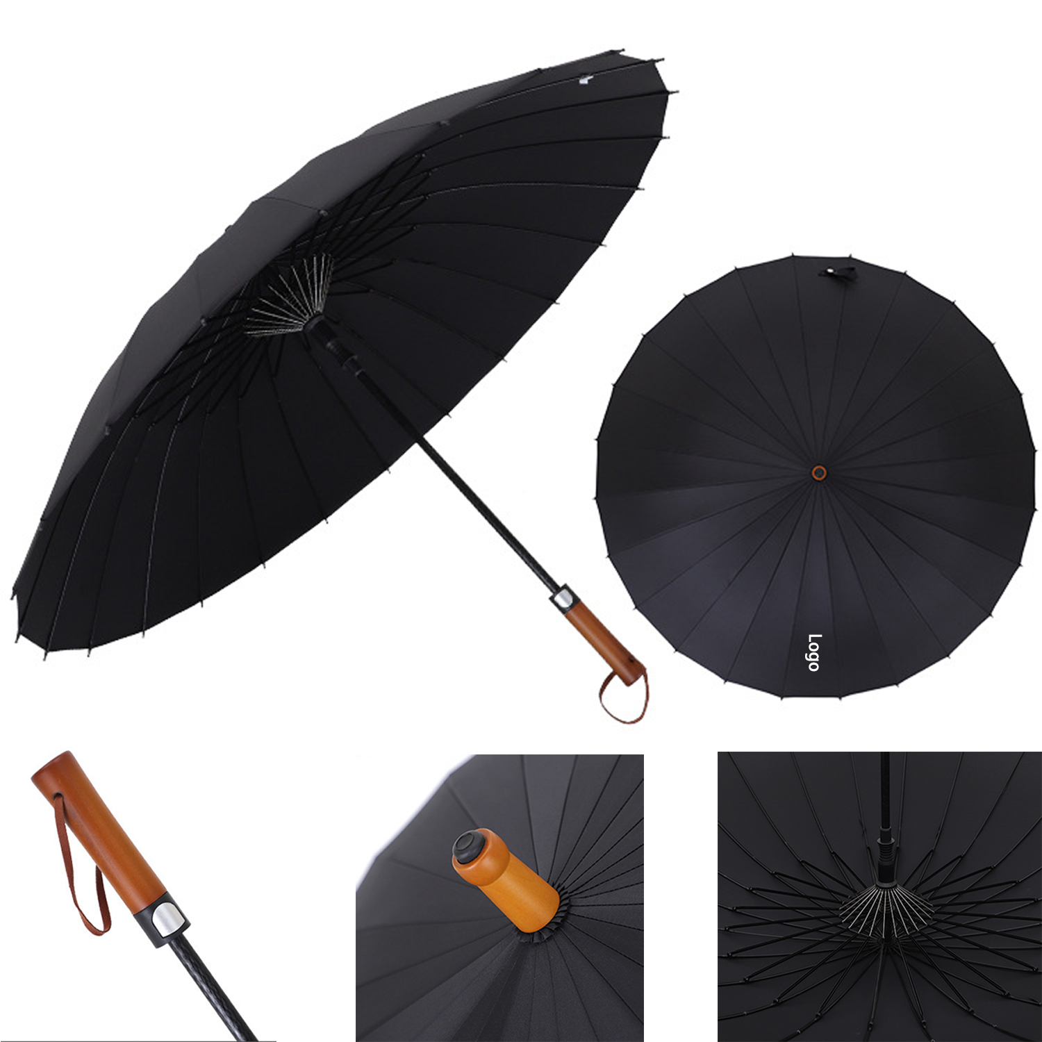 | Feature : | Windproof Large Umbrella for Rain 45 Inch Automatic Open Classic Wooden Handle Strong 24 Ribs |