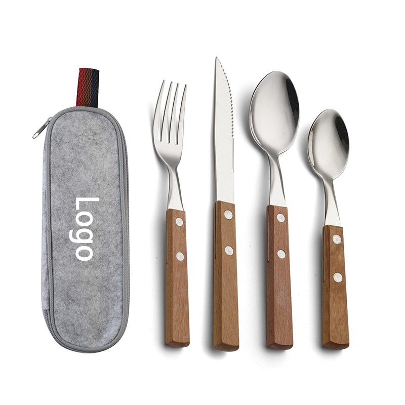 | Feature : | Wood Handle Silverware Set with Case Reusable Knife Fork Spoons for Office, School, Camping, Outdoors |