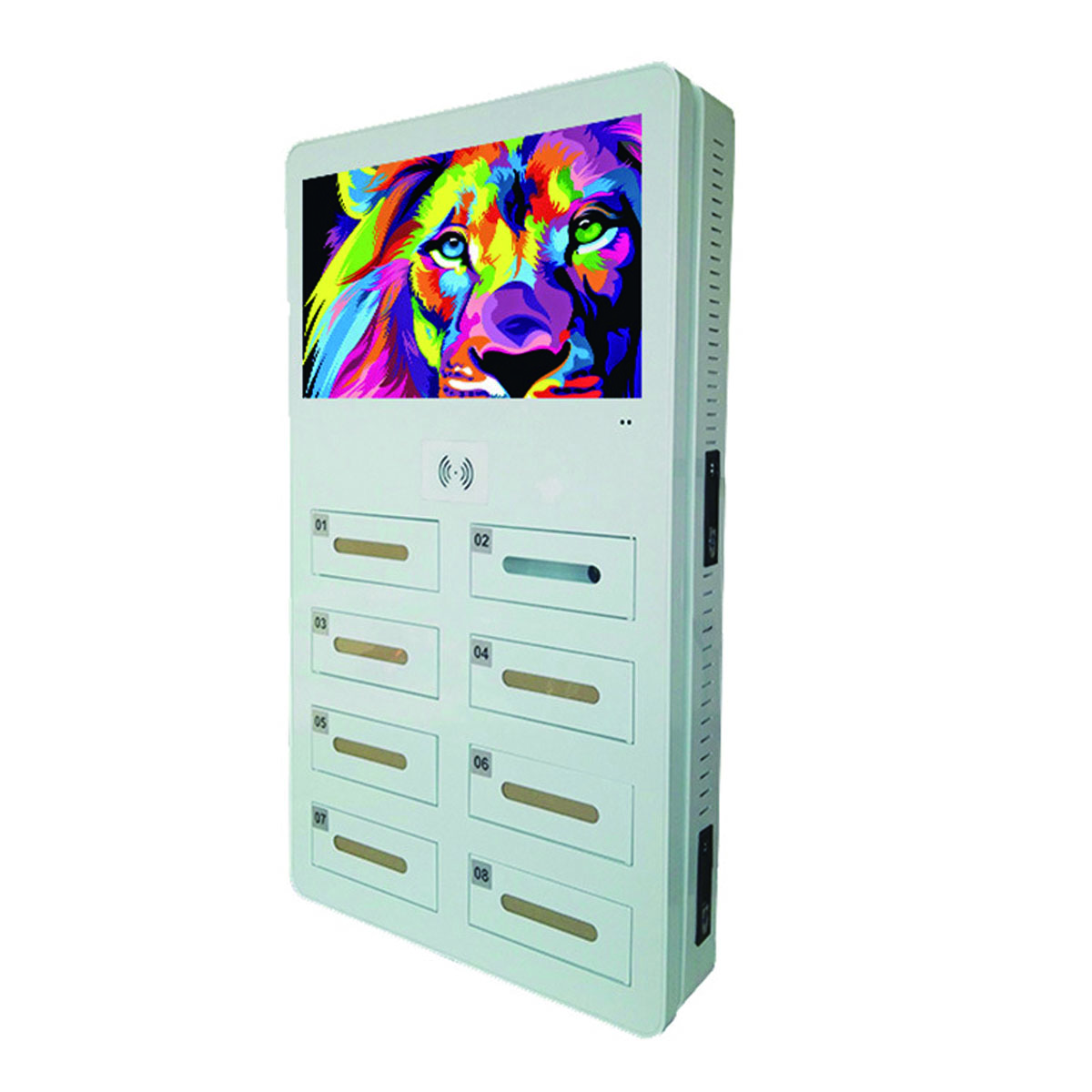 | Feature : | 8-bay Wall Mounted Phone Charging Station Locker with 21.5 inch LCD Advertising Screen Storage Box |