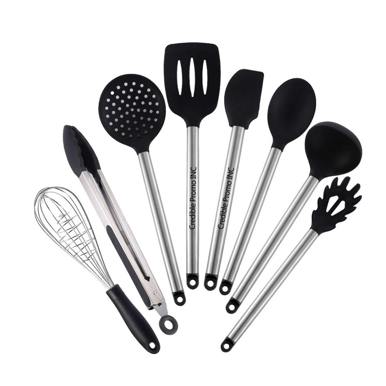 | Feature : | 8pcs Stainless Steel Silicone Kitchenware Set Non-stick Spatula Spoon Kitchen Tool Set |