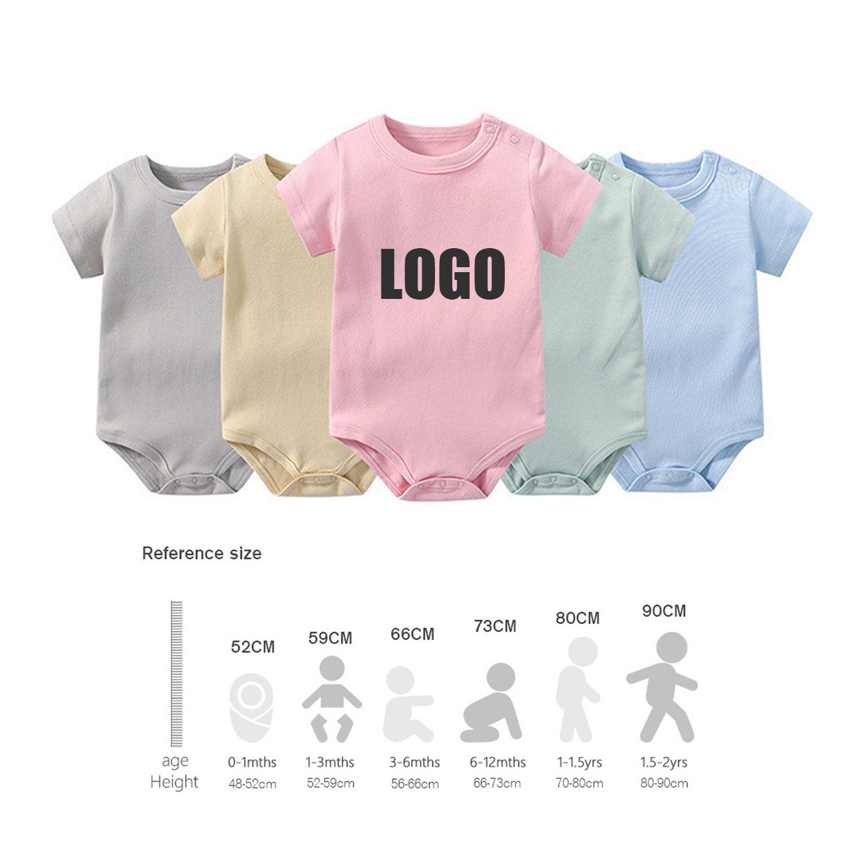 Made of 100% cotton. Many colors can be chosen. Short-sleeve bodysuits in baby-soft cotton featuring solid. Nickel-free snaps on reinforced panels. Customize with an imprint of your company logo and message for heightened brand awareness.