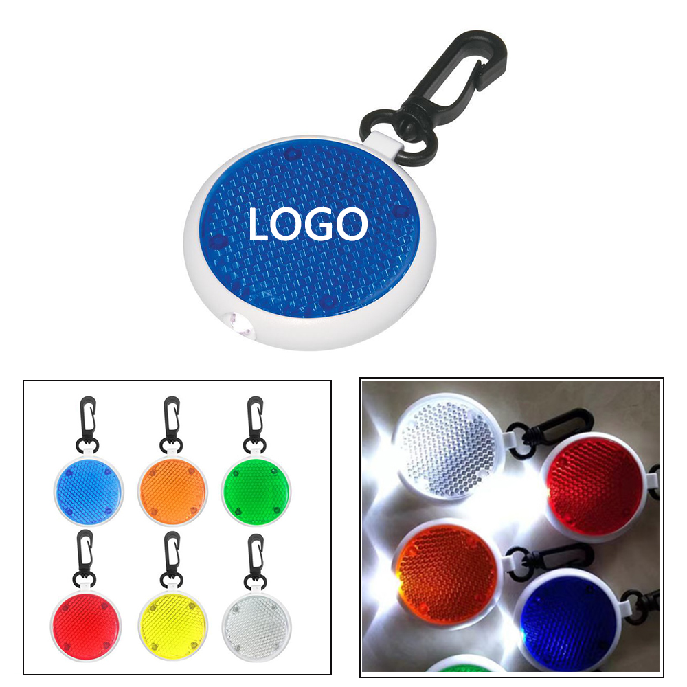 Backpack Blink Light with a plastic Carabiner, which can hook to belt loops, backpacks, jackets, bicycles, pets and more. Press the button once to keep the light on, twice to blink slowly, a third time to turn off. LED lights color usually is white. It contains two button batteries.