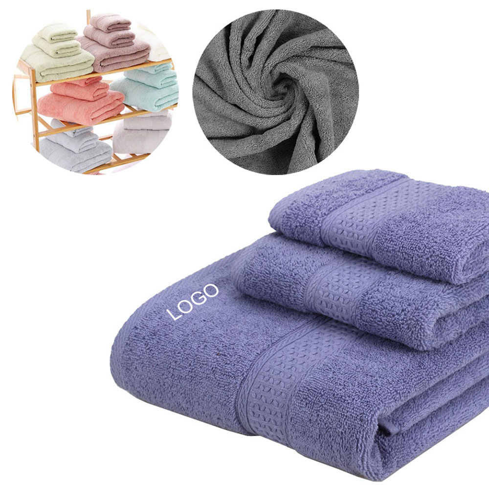 Our unique design towel woven with 100% cotton with advanced twist management technology construction guarantees ultimate softness, durability, and quick-dry. These towels come in more than a dozen colors and can be customized with embroidered logo, easy to wash and care for, simply machine wash and tumble dry low to bring the plush, soft feel back. It includes 1 bath towel, 1 hand towel and 1 face towel.