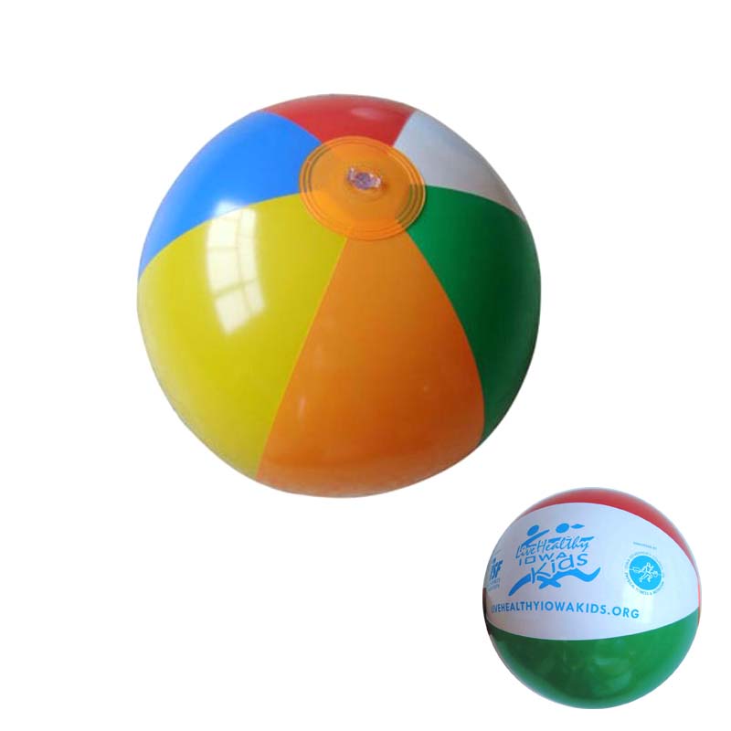 Mixed six different colors beachball,diameter is 12" inflated. Made from 6 panels PVC material. With tight air tap, each one is tested before shipped out. Many colors and your customized LOGO is available.