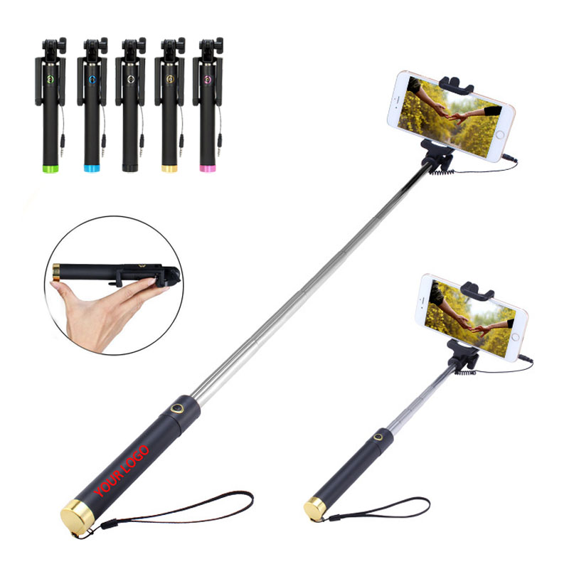 All in One Selfie Stick, Mini selfie stick, Pocket Size, Folding integration. Length of Extension from 7 3/8" to 33". Easily put into your pocket or handy bags. Mini size for carrying easily. Compatible for Android 4.2 above and for IOS 5.0 above system smartphones. Perfect for your traveling, party, event, camping etc. Your logo can be impritned on the handle ! Take our new generation quality wired selfie stick now !