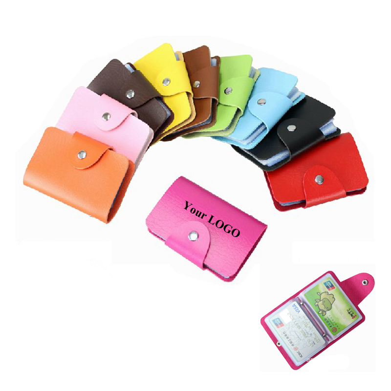 This card holder, made from PU leather. Size is 4 1/8"x2 3/8", suit for your credit cards, business cards and any other shopping cards. 24 card pages inside. Anti-demagnetization and double Anti-tear desigh for each film page. Many colors for your option. Your customized LOGO can be silkscreen imprinted or debossed.