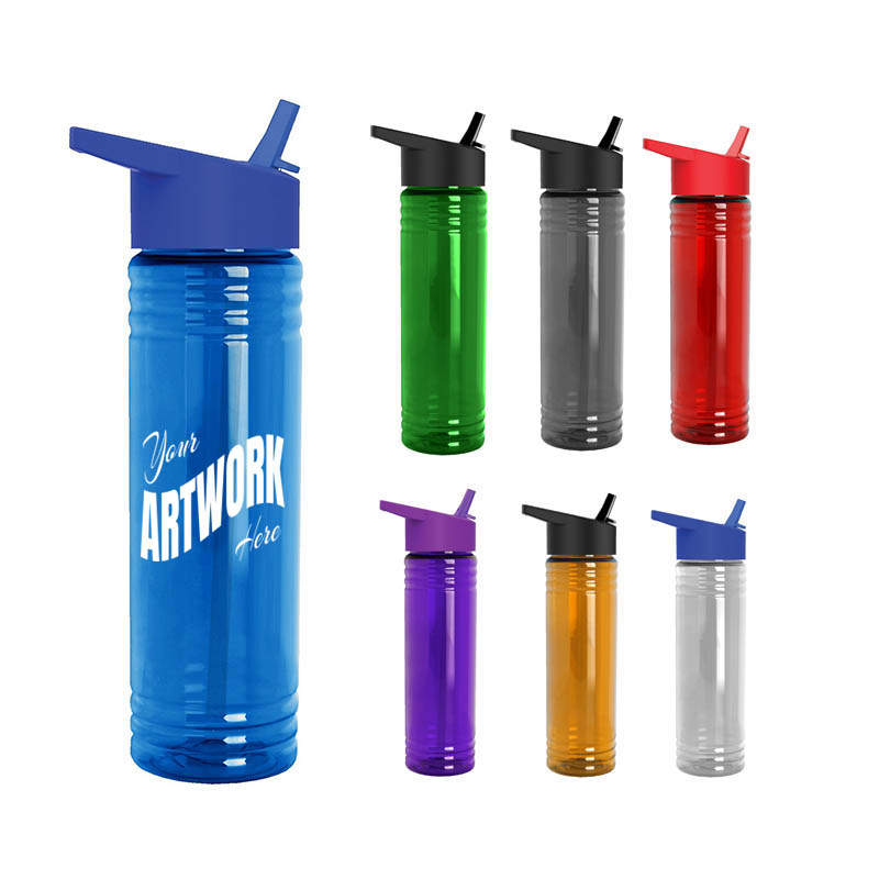 Excite your client with our slim fit design transparent water bottle. Features with flip straw lid and narrow cylinder design. Made from food grade PS material, BPA free, come with volume 24 oz/700 ml. This upgrade bottle provides significantly more space so your brand is sure to capture attention from every angle. Reusable, Refillable, and Recycled. Great for Sports, Health & Fitness Promotions. Hand wash only Do Not Microwave.