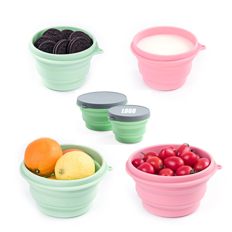 This folding bowl is made from food-grade silicone, which is FDA approved and BPA free. Sturdy thick wall and heat insulating, not flimsy like some cheap silicone. The flexible silicone materials make them more easy to be folded.The collapsible silicone take up no space in your pocket, backpack, bag, suitcase. Easy to carry or transport. You can custom your logo and color of the bowl. The MOQ of color customize is 1000 pcs. There are two kinds of capacity: 500ml and 1000ml. The price is based on the 500ml (16.8OZ). Welcome to inquiry us!