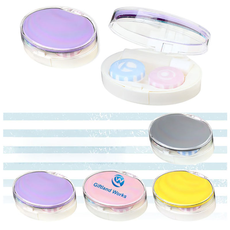 This is a cheap contact lens case, functional as an overnight travel case or home use. Features built-in mirror, an empty bottle, a tweezers and a stick. Designed with a press button on the box is for easily and conveniently opening and closing. Light weight, portable and convenient for carrying.