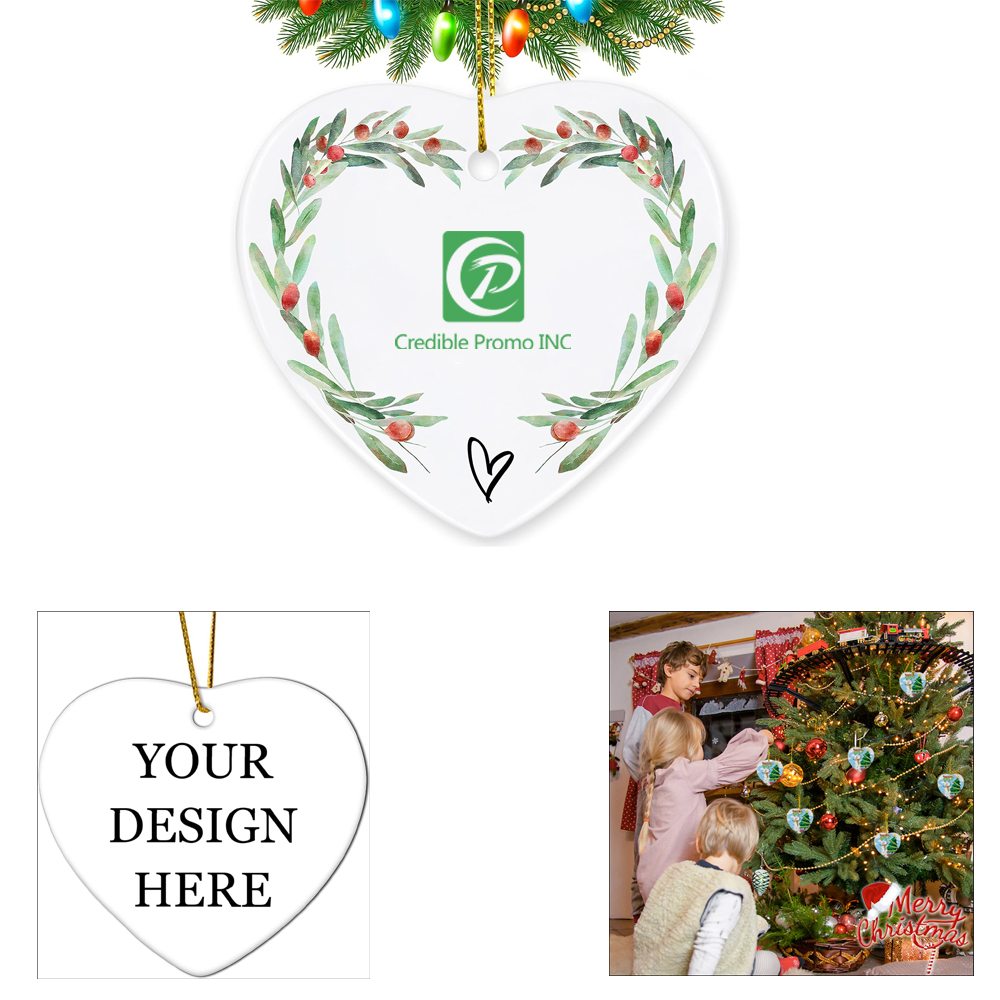 | Feature : | Custom Heart Shape Ceramic Christmas Ornaments Full Color Imprint Hang Tag Holiday Decoration With Ropes For Christmas Tree Party Wedding |
