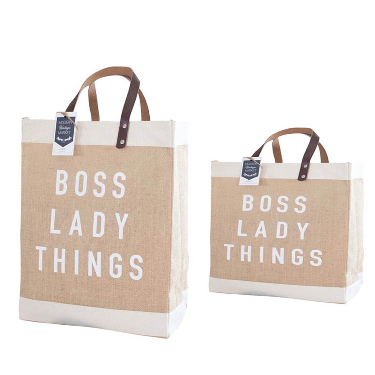 Custom Logo Jute Market Tote Burlap Grocery Bag with Leather Strap Handles