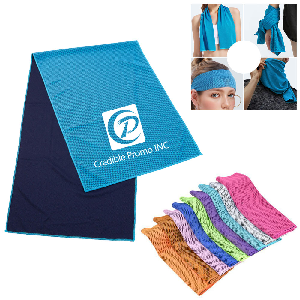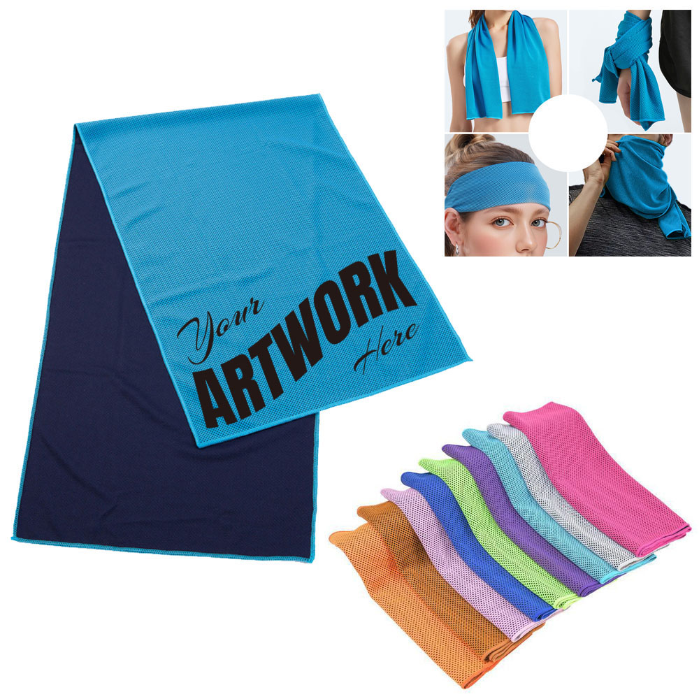 Stay cool with our quick dry cooling towel. Made of good quality mesh polyester which is breathable, absorbent and fast dry fabric. Eco friendly and chemical free. Ideal for summer events, marathons, beaches, traveling, tradeshows, and other sports or outdoor activities, these quick dry towels are sure to boost your brand image. It measures 11"x35", we also have other size for your choise. Towels offer a large screen print area, ideal for maximum brand exposure. Our list price is based one 1 color imprint, also available for full color imprint, welcome to inquiry us!