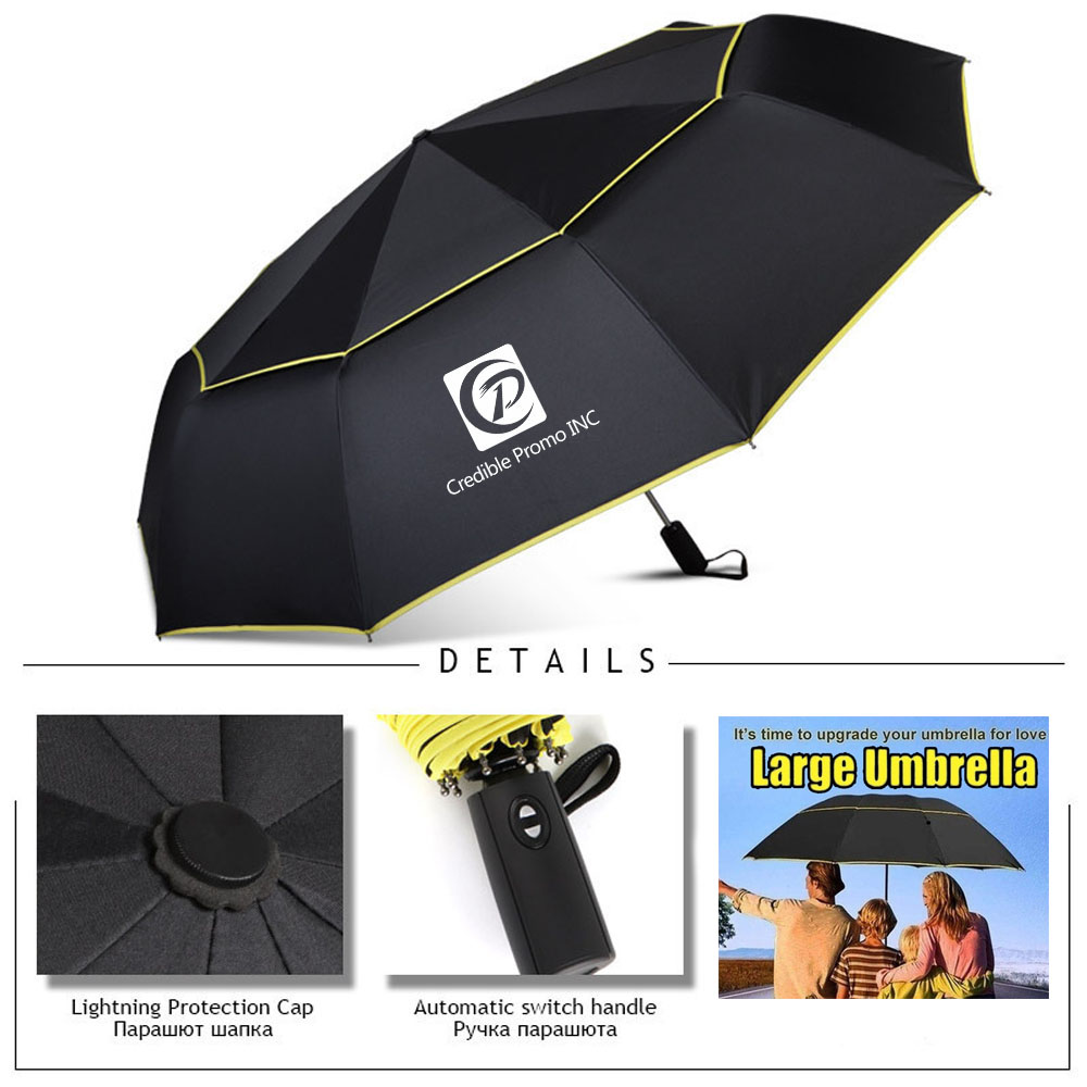 This windproof umbrella features an innovative, one button auto open and close design, making it's one of the simplest folding umbrellas to operate. The wind resistant umbrella is designed in a double-canopy venting, which allow the wind can pass through to prevent it from inverting by the strong wind. Reinforced stainless steel frame system with 10 ribs construction also enhance its stability and effect of windproof.