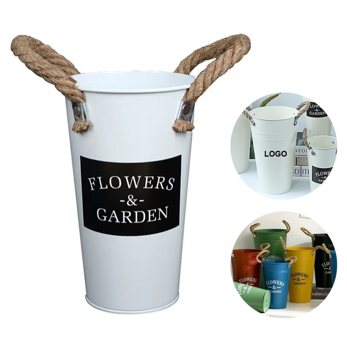 | Feature : | Large Metal Plant Container 15.7 Inch Height Farmhouse Flower Buckets with Twine Handles |
