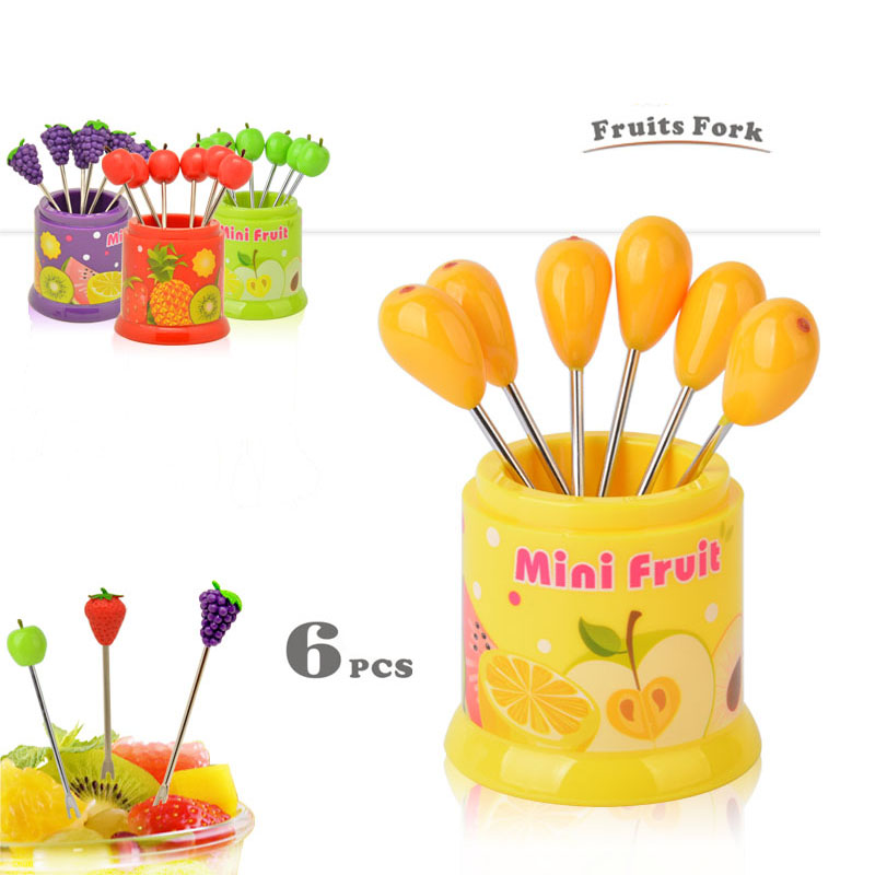 | Feature : | Fruit Shaped Fruit Forks Set, Including 6 Fruit Forks and One Plastic Container. |