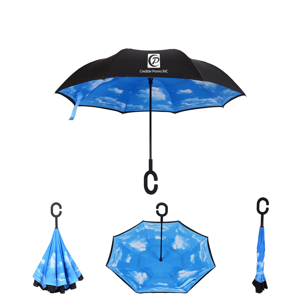 Give your clients full coverage from the rain while fully exposing your brand! Diameter 41.7" when opened. Features double-layer cloth with your full color logo on the inner and outer sides of the umbrella. Stay dryer for longer by putting umbrella down as you go indoors or get into the car. This umbrella makes a great promotional giveaway for outdoor activities, trade shows, golf tournaments and corporate incentives!
