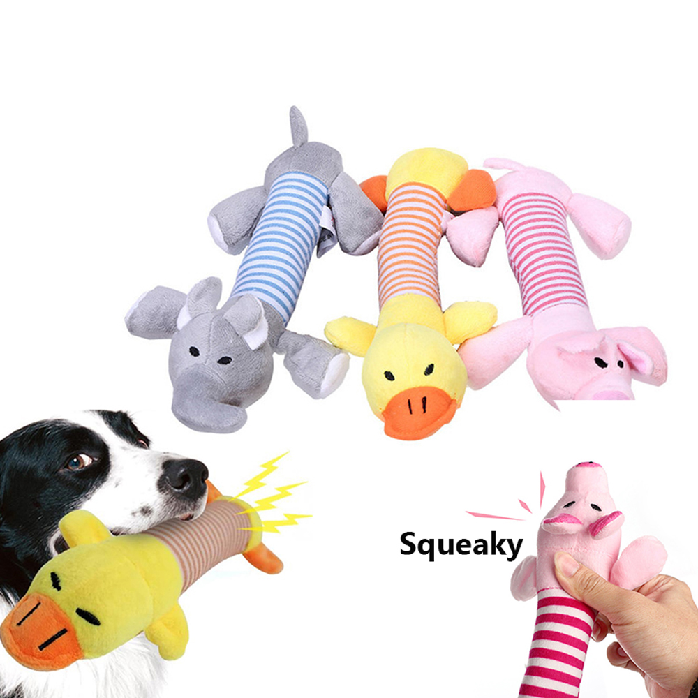 The most popular dog squeaky toys for small, medium and large breeds. You can choose 3 stuffing toy (yellow duck, pink pig, grey elephant). A durable liner is added to the plush toy for longer play time and durability. We also reinforce all seams to make the toys tougher. Provide hours of fun. Made with lead-free non-toxic soft high quality material.