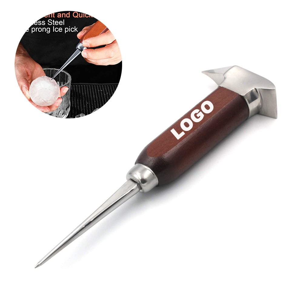 Our hammer-style ice chisel gives you better control and requires less exertion/force, and make cutting ice faster and sharper. It's modern design features a heavy-duty stainless steel anvil pick at the top, with a sharp point for scoring and cracking large chunks of ice, and a standard size pick below for breaking cubed or bagged ice. Perfect for Kitchen, Bars, Bartender Use.