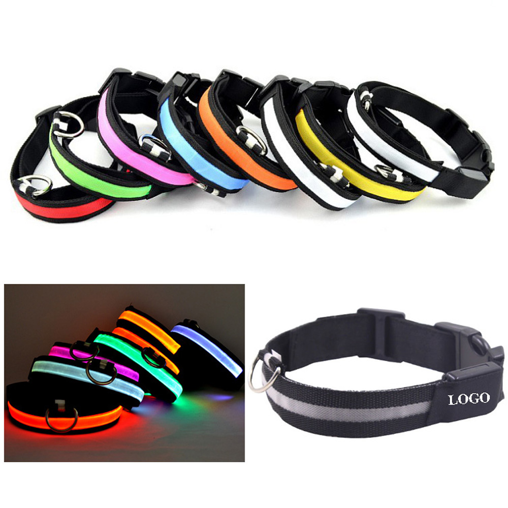 Vehicles will see your dog well in advance with this bright collar. Bright LED provides optimal dog visibility, reducing the risk of potential collisions. Keep your dog safe from vehicles and pedestrians, no more worry when wandering with your puppy in the night. Change the light between steady mode, rapid flashing or slow flashing with just one click. It contains two replaceable batteries. Your LOGO or artwork can be imprinted on the cloth.
