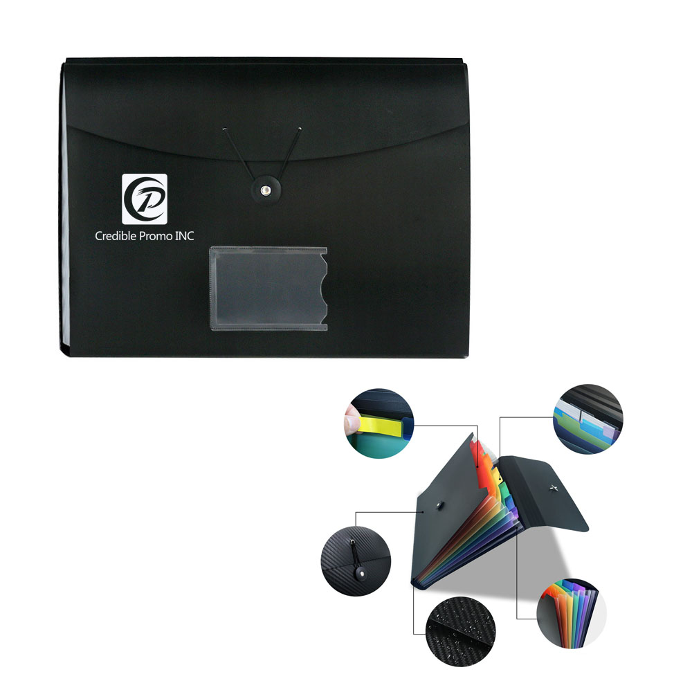 This folder is so perfect for school or office workers. There are 7 total compartments, one compartment for each day's information, which can be used as a summary for the week. There are two styles, one is twill, twill can't be imprinted with a logo, the other is frosted, frosted surface can be imprinted with a logo. Our price includes a one-color logo for the frosted style.