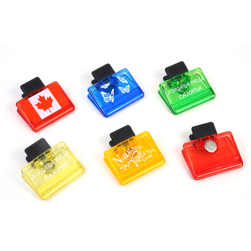 Magnetic Memo Clip Holder, made from PP and PS. Rectangle Shape. High intensity magnet with strong holding power. Great for papers, snack bags, memos and so on. Ideal promotional item with large exposure for your company message. Many colors for your option.