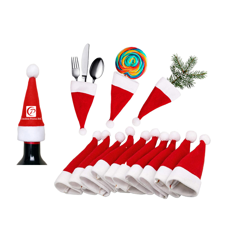 | Feature : | Mini Christmas Hat for Silverware Holder, Candy Cover, Wine Bottle Decor |
