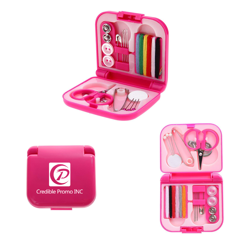 This sewing box is made of sturdy plastic and metal, durable for use. This box includes buttons, needles, pins, thread, scissors, which can meet your different needs for sewing. Particularly suitable for home and travel use. This compact storage box is designed to keep everything in its place and is small enough to fit easily in your pocket, purse, briefcase or luggage. Your LOGO or artwork can be imprinted on it.