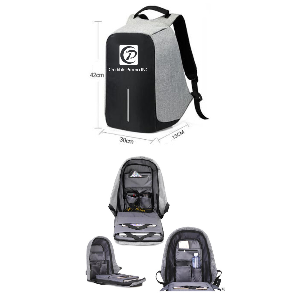 This backpack with a USB port, so you can put your power bank into the backpack, connect the data line. And you can charge your phone just connect with the USB port. You can free one hand when you need power bank to charge your phone. The reflective stripe design is also a safe way when you walk in the dark. With a large back pocket, you can keep your laptop, tablet, etc inside. Your LOGO or artwork can be imprinted on it.