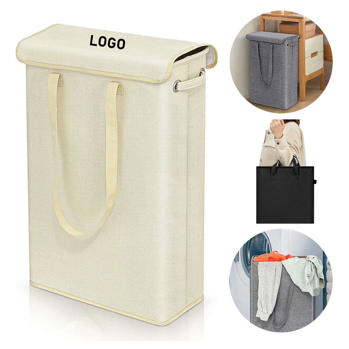Narrow Laundry Hamper with Lid Collapsible Handbag