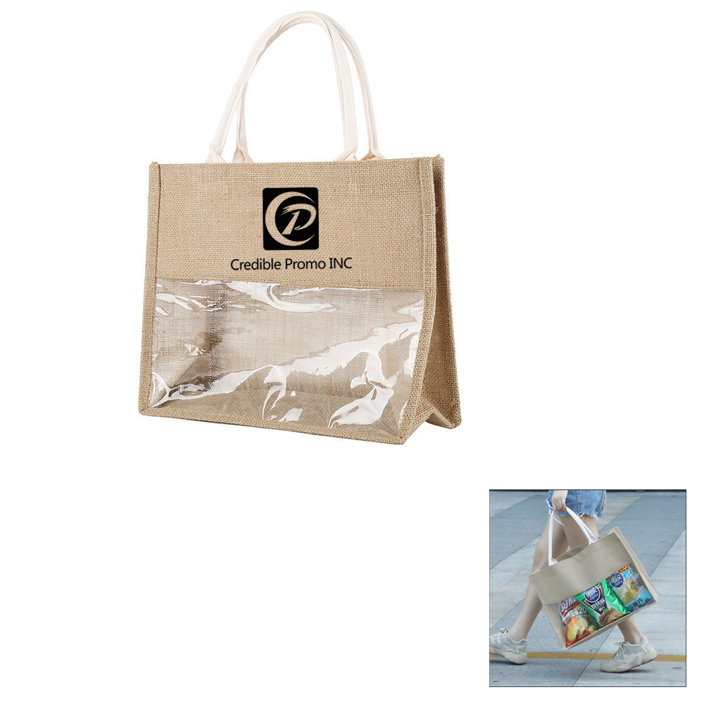| Feature : | Natural Burlap Grocery Tote Bag With Clear PVC Window For Outdoor Shopping |