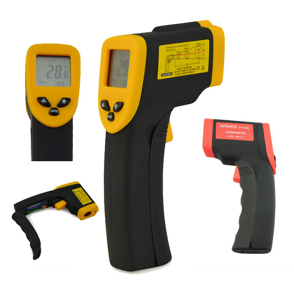 Non-Contact Laser Infrared digital lcd display thermometer, handgun shape. Simple One-Handed operation, can measure temperature Fast, Accurate and Handy. Laser Targeting, LCD with Back Light, C/F Select Switch, Laser ON/OFF Switch, Automatic Power Off, Display Hold Function. Temperature range: -50 to 380 Degree C ( -58 to 716 Degree F), Accuracy: up and down 2 Degree C or 2%. Widely used in measuring Machinery, Ceramics, Food, Metallurgy ect surface temperature.