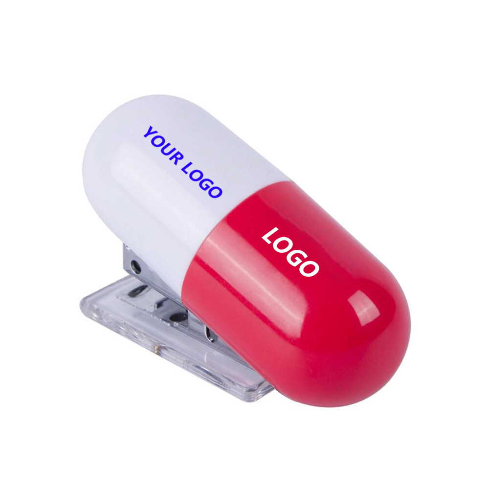 Special capsule shaped stapler. Made from ABS material. Perfect promotional projects for medicine. It is a very useful stapler as well. Printing your LOGO on the capsule.