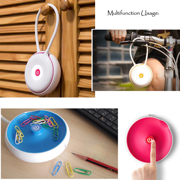 Three light modes pairing when reading, relaxing, or bedtime. Silicone hose can adjust to different angle as your requirement. ON/OFF button. Built-in 1200mah rechargeable lithium battery with a USB charging cable included in the set. The high lighting time up to 5 hours. You can set it on the table or hang it on anywhere you want.