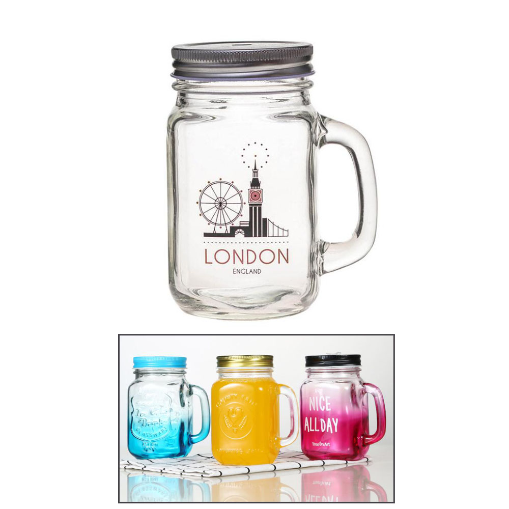 Regular Mason Glass Mason Jar Mugs With Handle 16OZ