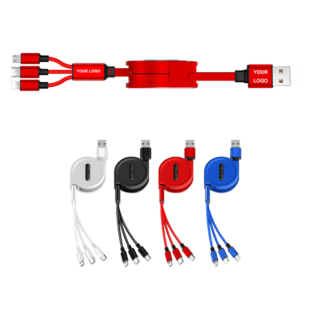 Our latest 3-in-1 charging cable is a retractable cable, up to 47" long, made of high quality wire core, reduce resistance effectively which makes the charging speed quicker and more stable. Very simple, lightweight, portable and convenient. Compatible for many types of phones. Easy to carry. Colors vary. Your LOGO can be printed. Please contact us for more details.