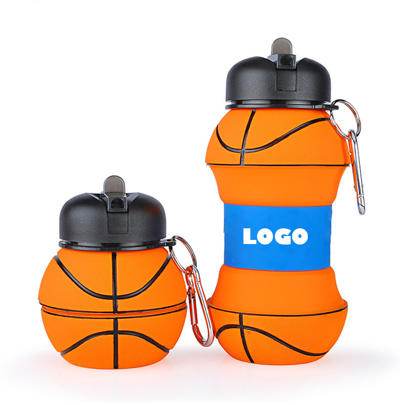 Squeezable Basketball Bottle with 1-click quick access to your drink. Sports bottle is easy for kids to use, refill and add ice cubes through its wide mouth lid. It is easily hand washed and safe to use in the dishwasher. Spill-proof lid 100% prevents any spills. Made from durable quality shatterproof silicone, cannot break from falling. Capacity of the lightweight travel bottle after folding - 7 Oz. before -19 Oz. Attach Portable Drinking Cup using a Carabiner to any backpack to keep your hands free. Size: folding 3.5"x3.5"x4", expand 3.5"x3.5"x7".