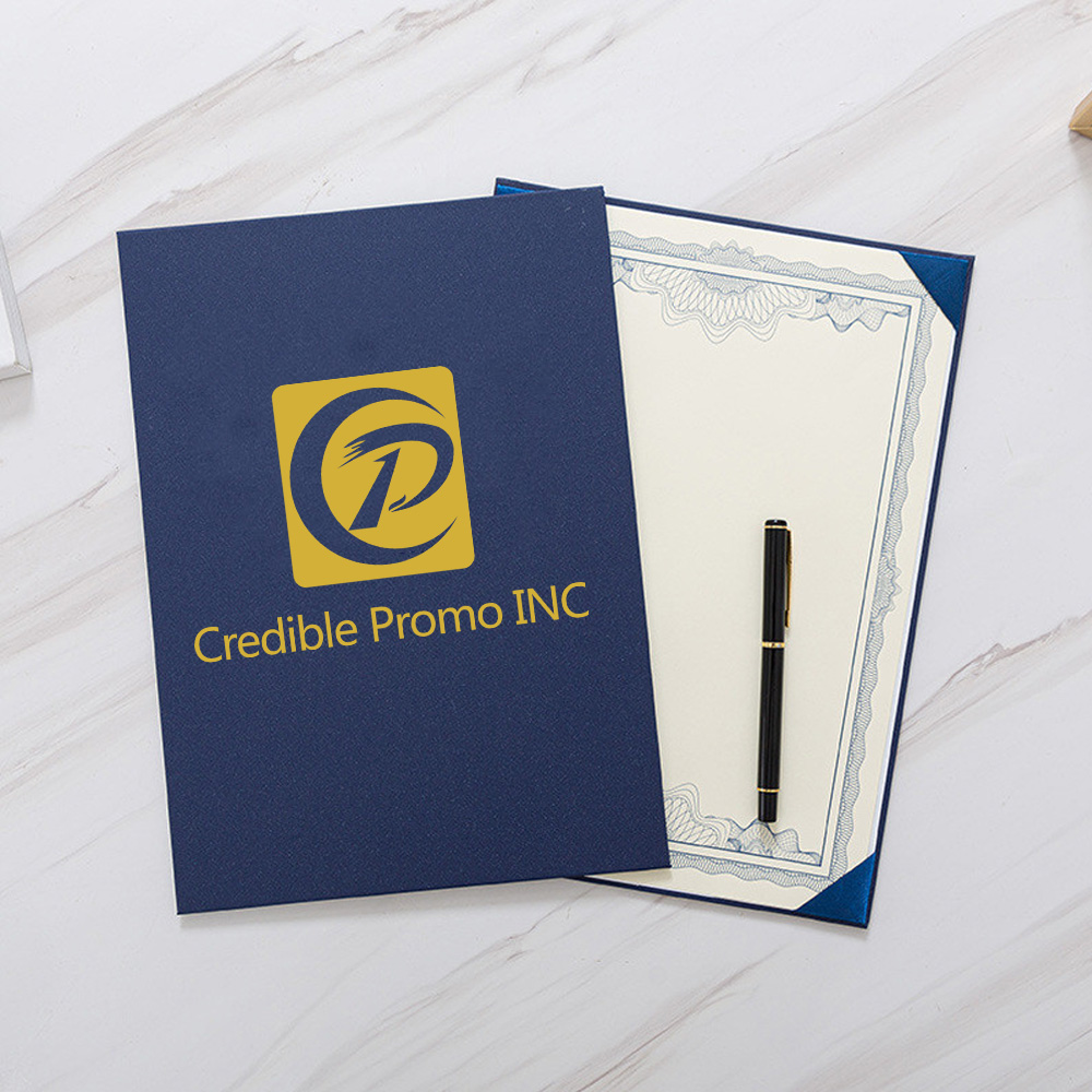 The single sided award certificate holder is about 8.7" X 12", features 4 corner slots, can hold the documents of 8.3" X 11.7" vertically and horizontally in place. It could hold your certificates, awards, anniversary diplomas, important letters, business documents, autographed photos, or letter size cardstock paper, also suitable for most occasions. Your logo can be gold or silver pressed on the cover. Inside page is not included.