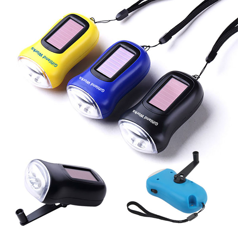 Solar Hand Crank Generator Flashlight. Environment-friendly, powered by solar and hand cranking. Built in rechargeable lithium battery, no need to use additional battery. Ultra-bright 3 LED, high intensity and durable lifetime. Mini and portable, perfect for outdoors use, simply keep it in you car, RV, boat and with your emergency kit.