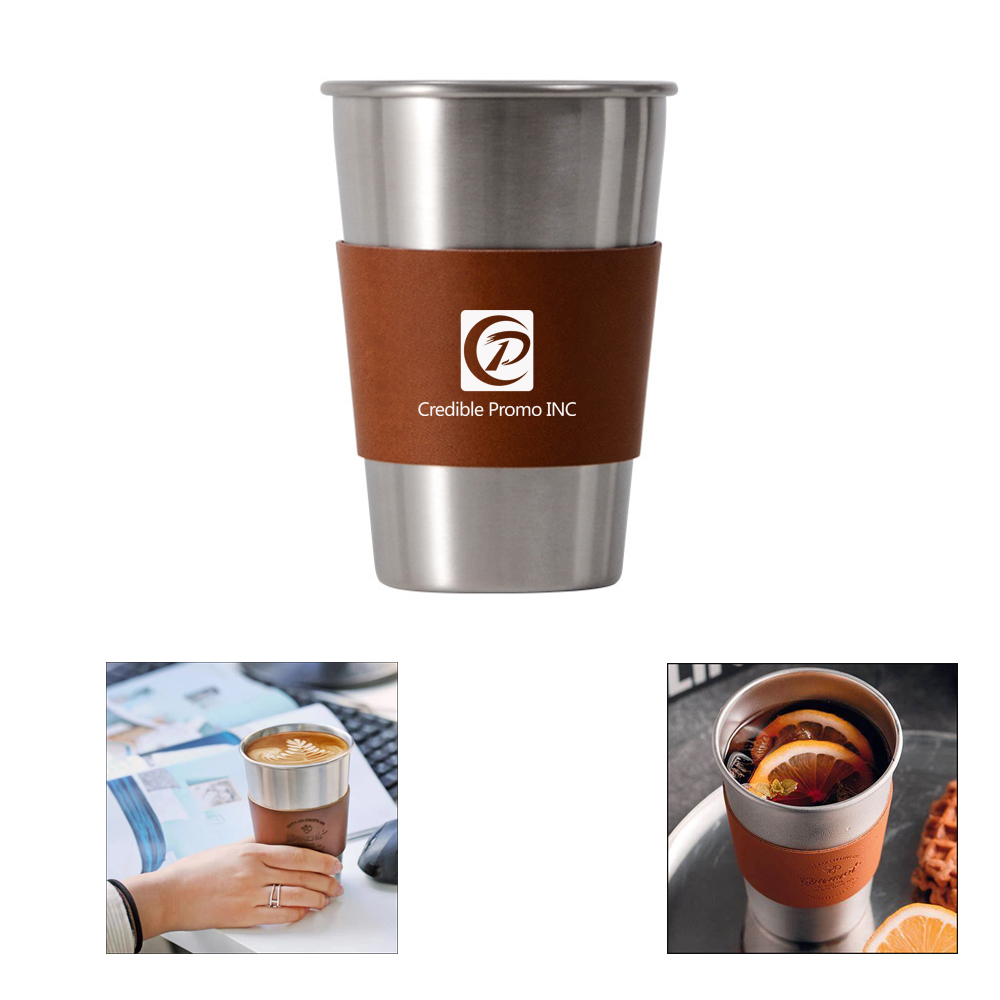 Stainless Steel Beer Cup Coffee Tumbler With PU Leather Sleeve
